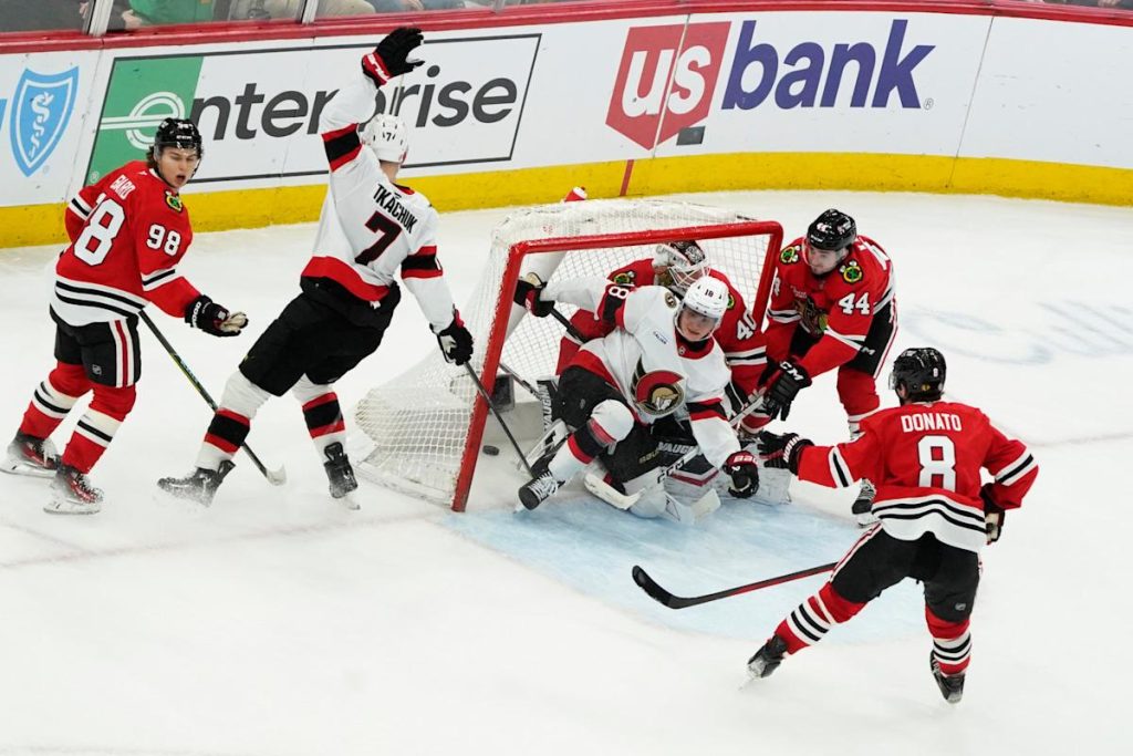 The victory was a collective effort, with multiple Senators contributing to the crucial points. Josh Norris, Jake Sanderson, and Drake Batherson each recorded two points in the win, showcasing the balanced attack that has been a strength of the team. Norris, known for his playmaking and tenacity, added another goal to his tally, while Sanderson and Batherson provided both offense and solid defensive play. In the first period, Brady Tkachuk, the team’s talisman, opened the scoring by tipping home a shot from Artem Zub. Chicago’s Ryan Donato, who has been a subject of trade speculation, quickly tied the game, and Teuvo Teräväinen gave the Blackhawks a 2-1 lead with a swift goal. However, the Senators rallied, with David Perron displaying his versatility by batting a puck out of mid-air to tie the game, and Norris blasting a one-timer to put the team ahead 3-2.