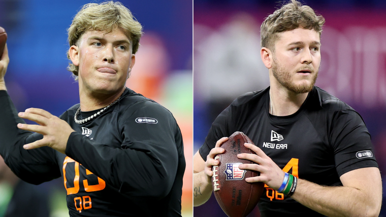 Will Howard, from Ohio State, stands at 6-4 and weighs 236 pounds. Howard had a solid performance at the combine, showing well-rounded pocket passing skills. He was accurate on throws all over the field, making him a strong Day 2 prospect. Howard’s performance has him in the conversation for a second-round pick, and he could benefit from reuniting with former coach Chip Kelly on the Raiders, where he could fine-tune his skills.